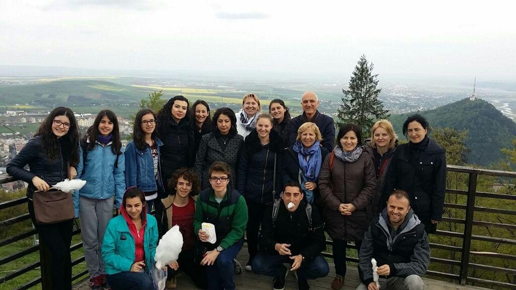 Vykdydami tarptautinio Erazmus+ projekto ,,Pasikeisk ir išgirsk jų balsą“ programą, mes, Kražių gimnazijos atstovai – pagrindinio ir vidurinio ugdymo skyriaus vedėja Živilė Šiaudvytienė, anglų kalbos vyr. mokytoja Rasa Rimidytė – Liekienė bei bibliotekininkė Jurgita Karpenkienė – balandžio 18 – 22 dienomis viešėjome Rumunijoje. Balandžio 18-osios popietę, tik nusileidus Bukarešto oro uoste, mus pasitiko lietuviams šiuo metų laiku neįprasta kaitra, net 29 laipsniai šilumos. Per šilti rūbai, nuovargis ir 6 valandų kelionė autobusu iki galutinio taško privertė sukaupti paskutines jėgas. Kelionės tikslą pasiekėme tik vėlų pirmadienio vakarą. Visi projekto dalyviai iš Italijos, Ispanijos, Turkijos ir Lietuvos apsistojome rytinėje šalies dalyje, Bacau mieste, kuriame gyvena apie 150 000 gyventojų. Tai pramoninis miestas, įkurtas istorinėje buvusios Moldovos kunigaikštystės teritorijoje. Turistų ši vietovė beveik nelankoma, nes nepasižymi nei gamtos grožiu, nei architektūra. Jo nepuošia įspūdingi pastatai, išpuoselėti parkai, vandens telkiniai. Laikas čia, rodos, seniai sustojo, vietiniai gyventojai išsaugojo savitą architektūrą, tradicijas. Kitą rytą mus pasitiko jau švelnesnė, pavasariu dvelkianti šiluma ir nuoširdūs vizito organizatoriai. Prie pusryčių stalo, susitikę ir pasilabinę su vietiniais ir kitų šalių projekto dalyviais, išvykome į Grigore Antipa mokyklą. Šeimininkai iškilmingai mus sutiko prie mokyklos durų. Direktorius ir jo pavaduotoja sveikino svečius, paspausdami kiekvienam ranką. Mokiniai, pasipuošę tautiniais rūbais, vaišino nacionaliniu rumunų pyragu ir druska. Įsikūrę projekto dalyviams skirtoje patalpoje, buvome pagerbti mokyklos direktoriaus, jo pavaduotojos ir projektą koordinuojančių mokytojų sveikinimo žodžiais. Susipažinome su trečiojo projekto susitikimo veiklomis, dalijomės įspūdžiais iš antrojo, kuris vyko Lietuvoje, Kražių gimnazijoje, lapkričio mėnesį. Kiekvienos šalies komanda pristatė, kokias veiklas įgyvendino iki trečiojo susitikimo. Daug dėmesio buvo skirta informacijai apie projekto viešinimą: darbą su Moodle platforma, tinklaraščio bei laikraščio kūrimą. Po sočių pietų mokyklos valgykloje dieną tęsėme stebėdami mokinių pasirodymą. Pagrindinė vaidinimo mintis – paauglių ir suaugusiųjų nesusikalbėjimas, tolerancijos stoka. Rumunų mokiniai scenoje suvaidintomis situacijomis ir dainomis perteikė savo žinutę „daugiau jokių distancijų“. Norėdami gerai jaustis turime stengtis suprasti ir gerbti vieni kitus, nesvarbu, ar tai mokinys ir mokytojas, ar vaikas ir mama. Vien buvimas vyresniu nesuteikia teisės negerbti jaunesnių. Pasibaigus mokinių pasirodymui, aptarėme jį su projekto partneriais, diskutavome apie žinutės aktualumą kitose šalyse. Baigiantis dienos veikloms, aptarėme rudenį planuojamą ketvirtąjį projekto susitikimą Ispanijoje. Visa antroji išvykos diena buvo skirta pažintinei ekskursijai po istorinę buvusios Moldovos kunigaikštystės teritoriją. Sustojome pasigrožėti istoriniu viešbučiu/restoranu, kuris buvo pastatytas 18 a., prie vieno iš tuo metu pagrindinių Europos kelių. Šioje vietoje išlaikytas autentiškas stilius, viduje įrengtas muziejus. Čia galima paragauti tradicinio rumunų maisto ir gėrimų, įsigyti suvenyrų. Mūsų aplankytame regione, anot ekskursijos organizatorių, stūkso per tūkstantis vienuolynų. Apžiūrėti spėjome tik vieną. Tvyranti ramybė, rimtis ir susikaupimas laikinai pritildė įvairiakalbės grupės šurmulį. Rumunija garsėja viduramžių pilių gausa ir didybe. Tuo įsitikinti galėjome aplankę vieną iš jų, įsikūrusią Targu Neamt mieste. Tai 14 a. pastatytas įspūdingas savo istorija, architektūra ir gamtovaizdžiu statinys. Maršrutą baigėme jaukiame, 15 a. įkurtamePiatra Neamtmieste, apsuptame kalnų. Vaikštinėjome jaukiomis senamiesčio gatvelėmis, apžiūrėjome vietinę architektūrą, grožėjomės miesto panorama, funikulieriumi pakilę gerokai virš stogų. Paskutinę viešnagės dieną, sugrįžę į mūsų lankomą mokyklą, atlikome įdomiausią dienos užduotį – kartu ruošėme rumunų tradicinius varškės pyragaičius. Pasigirsiu, kad mūsų komanda buvo greičiausia. Turėjome galimybę susipažinti su rumunų virtuve. Maisto gaminimo metu netrūko geros nuotaikos. Kol pyragaičiai kepė, mes apžiūrėjome mokyklos patalpas: klases, administracines patalpas, stendus. Klausėmės pasakojimo apie rumunų švietimo sistemą, lyginome skirtumus ir panašumus. Oficialiąją dieną užbaigėme ekskursija poBacaumiestą. Aplankėme nacionalinį botanikos ir archeologijos muziejų, vieną iš seniausių miesto bažnyčių. Nors kelionė į šią šalį ilga ir varginanti, jai baigiantis vienareikšmiškai nutarėme, kad mūsų komandai ji buvo naudinga ir įdomi. Galėjome palyginti skirtingų šalių jaunimo problemas, kultūrinius skirtumus, pagilinome užsienio kalbų žinias, o svarbiausia – dar labiau sutvirtinome Erasmus+ projekto dalyvių bendradarbiavimą. Rumunijos atstovų dėka tinkamai suplanuoto ekskursijų ir pažintinės veiklos laiko bei organizacijos praleidome prasmingą veiklos ir aktyvaus poilsio savaitę.