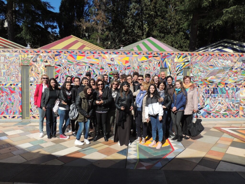 Viešnagė senovės Graikijos lopšyje ir senovinių gyvenviečių žemėje, turinčioje galybę bažnyčių, vienuolynų, pilių, rūmų ir kitų istorinių vietų, kur vis dar gyvos šimtmečius puoselėtos tradicijos, buvo ir prasminga, ir graži. Prasminga dėl bendravimo su partneriais, projekto idėjų sklaidos, graži – dėl pavasariško oro ir nuostabaus kraštovaizdžio: Italijoje dabar pats žydėjimas, nuo medžių krinta prinokę mandarinai, apelsinai, citrinos, kurių skonio ir kvapo nesulyginsi su atvežtiniais. Senovės Graikijos viena tradicijų, žinoma, teatras. Pirmiausia buvome pakviesti į miesto teatro salę, kur vyko partnerių mokyklos pasirodymas. Spektakliu, kuris jungė muziką, tekstą ir šokį, atskleistos mokytojų ir mokinių bendravimo problemos: nuolatinis visų skubėjimas, nesusikalbėjimas, patyčios. Po spektaklio turkų, rumunų, lietuvių ir ispanų delegacijos buvo pakviestos į konferenciją, skirtą Erasmus programos trisdešimtmečiui. Joje dalyvavo ir Erasmus Nacionalinės agentūros atstovai. Buvo aptarti vykdomi projektai, programos tęstinumas.