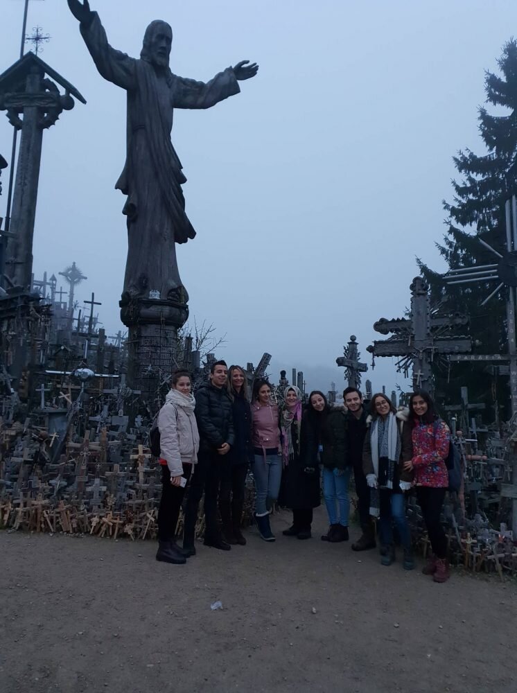 Ketvirtadienį tarptautinis projektas tęsė veiklą. Vyko pirmosios pagalbos teoriniai ir praktiniai mokymai. Po pietų svečiai, lydimi kražiškių mokinių ir mokytojų, dalyvavo kultūrinėje veikloje – išvyko į Kryžių kalną – Unesco paveldo objektą. Čia svečiai žavėjosi unikaliu kultūros ir religijos objektu, kurį pristatė anglų kalbos mokytoja Audronė. Kryžių kalne paliko projekto dalyvių kryželį su prašymu Dievui.