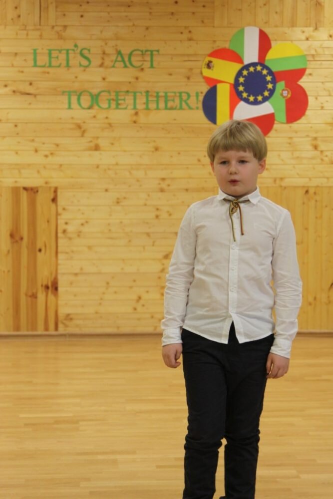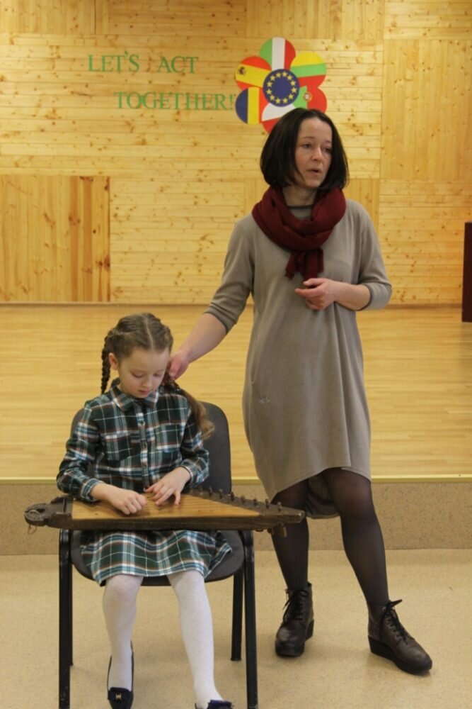 Antrą tarptautinio projekto dieną gimnazijos koordinacinė grupė pristatė Lietuvos etninės kultūros paveldą. Mokytoja E. Kvietkuvienė parengė pranešimą apie valstybės pastangas saugoti ir puoselėti liaudies kūrybą. Mokytojos E. Dambrauskienės parengti projekto dalyviai mokiniai dainavo dvi dainas, L. Karpenkaitė ir N. Urbonaitė kankliavo – jų mokytoja A. Vilimaitė-Karyznienė taisyklinga anglų kalba pasakojo apie šį unikalų lietuvių muzikos instrumentą. Lietuvių liaudies šokius šoko 4 ir 3g klasių mokiniai. Pirmokas J. Navickis pasakojo istoriją gimtąja kalba. Istorikė V. Andrulienė su grupe mokinių mokytojas iš Italijos, Ispanijos, Portugalijos, Rumunijos, Lenkijos įtraukė į liaudies žaidimus. Be abejo, viešnios išgirdo, kaip etnine kultūra mokiniai motyvuojami, kaip liaudies kūryba integruojama į ugdymo procesą. Kitaip tariant, sužinojo, pamatė ir pačios aktyviai dalyvavo.