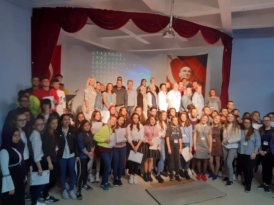 Atsisveikinimo vakare dalyvavo ne tik mokiniai, bet ir jų tėvai. Šilti ir draugiški turkai dalijosi su svečiais įspūdžiais ir noru dar susitikti.