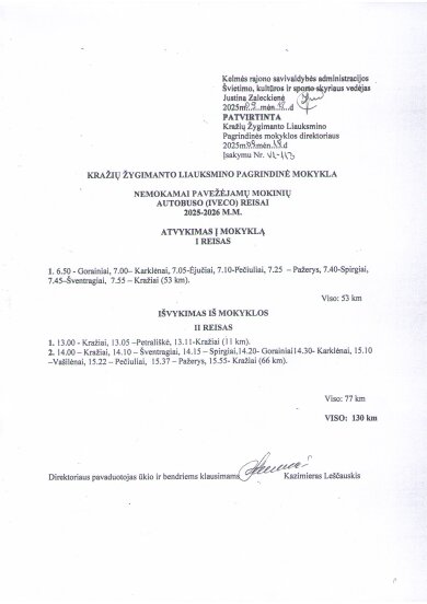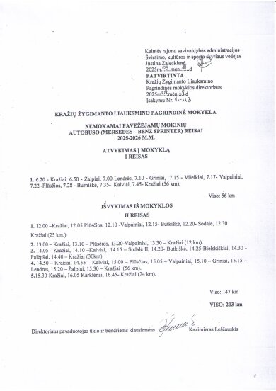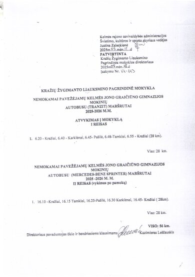 | Mokinių pavėžėjimo mokykliniu ir geltonuoju autobusu tvarkos aprašas | 2025-09-16 13:19:42 | 138.12 KB | ||