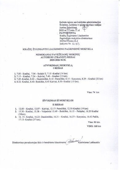 - Organizuoti mokinių pavėžėjimą į mokyklą ir namo.