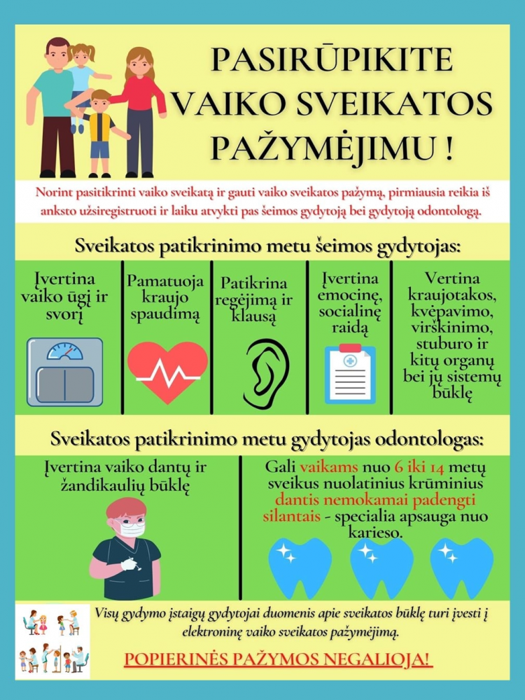 Pamokų metu mokykloje dirba sveikatos priežiūros specialistė, todėl nesivaržykite ir drąsiai kreipkitės.